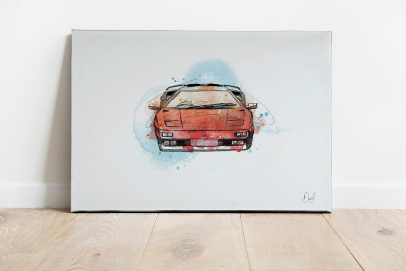 Vintage Car Illustration Classic Car Drawing Diablo Watercolour Classic Lamborghini Art Print Art Collectibles Giclee Delage Com Br